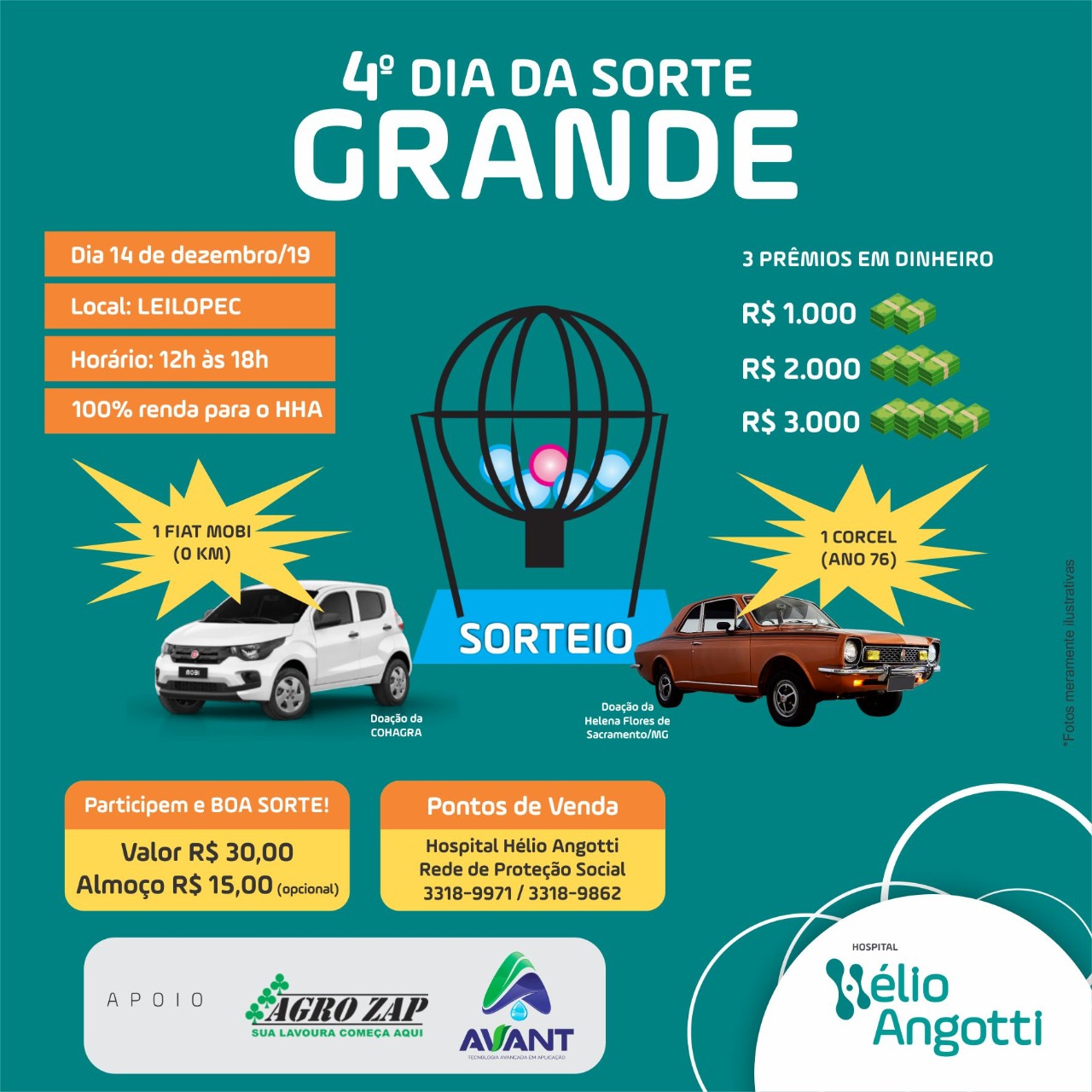 Falta menos de um mês para mais um grande evento com renda 100% revertida ao Hospital Hélio Angotti, em Uberaba. É o 4º Dia da Sorte Grande, marcado para o dia 14 de dezembro, na Leilopec.