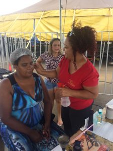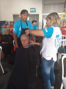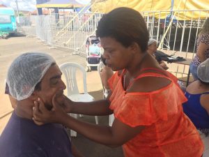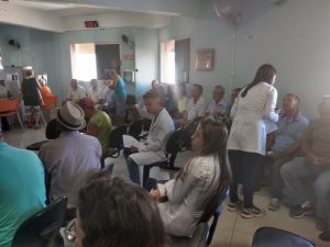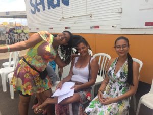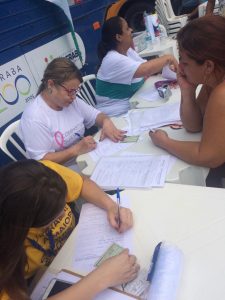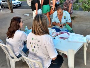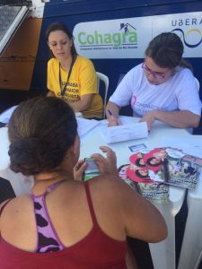 Ainda no sábado, pela manhã, estivemos no bairro Residencial Rio de Janeiro, prestando atendimentos de coleta de Papanicolau e encaminhamentos para coleta de PSA. O serviço faz parte de uma parceria, firmada com a Companhia Habitacional do Vale do Rio Grande – Cohagra, para levar prevenção para a comunidade deste bairro.
