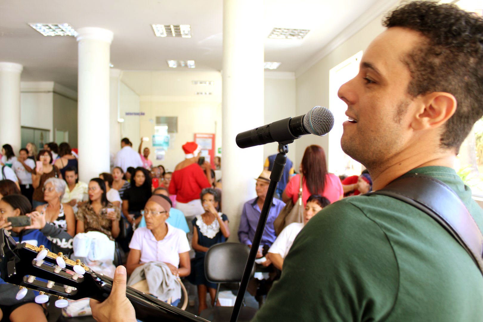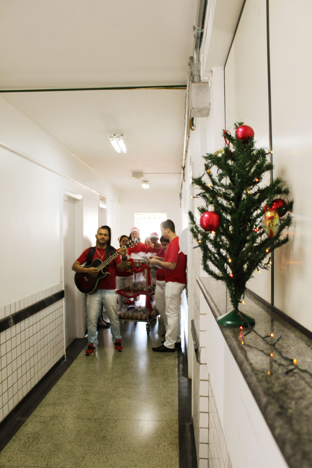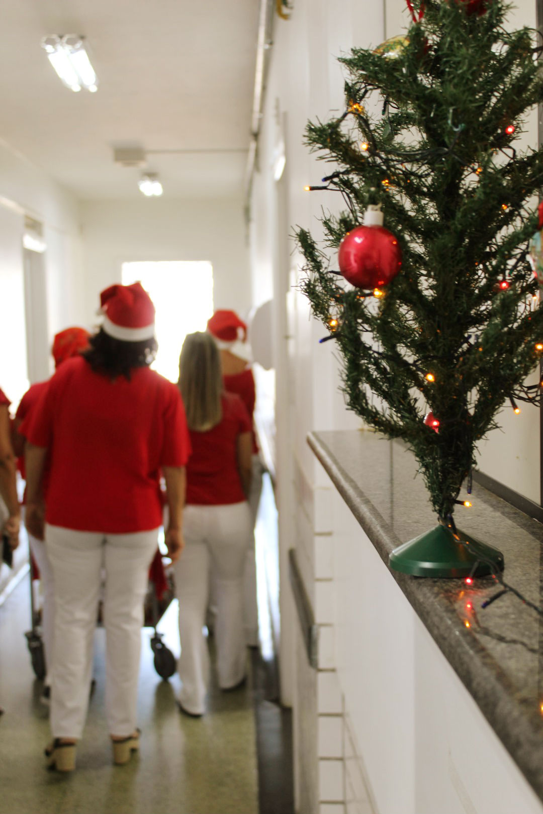 O clima natalino invadiu o Hospital Hélio Angotti, em Uberaba, na manhã desta segunda-feira (16). Foi o “EnCanto de Natal”, um momento emocionante que chamou a atenção de todos que estavam na instituição. A abertura foi com a apresentação de um coral natalino, formado por colaboradores e voluntários que cantaram a música “Um mundo bem…