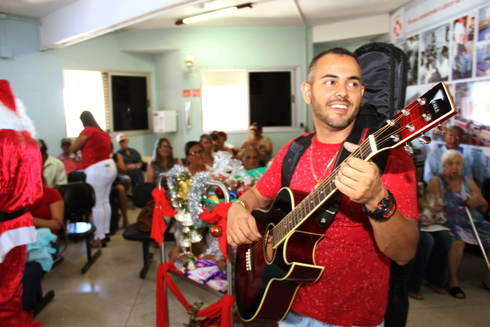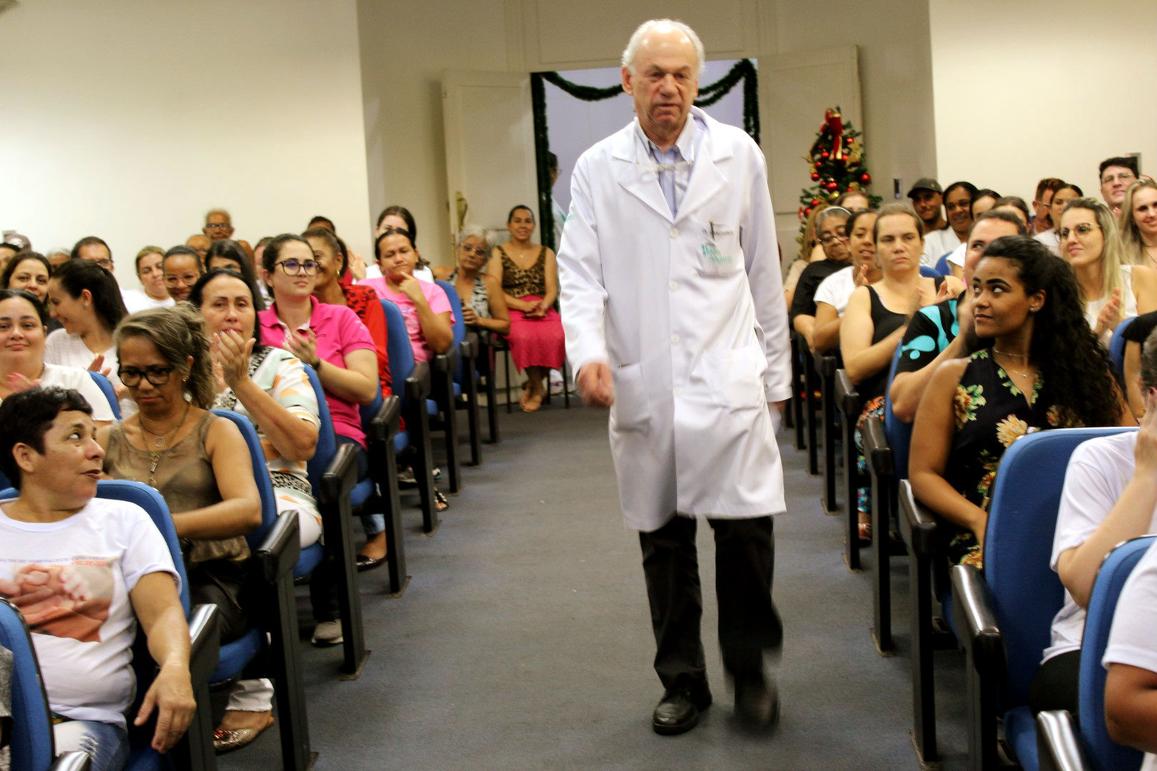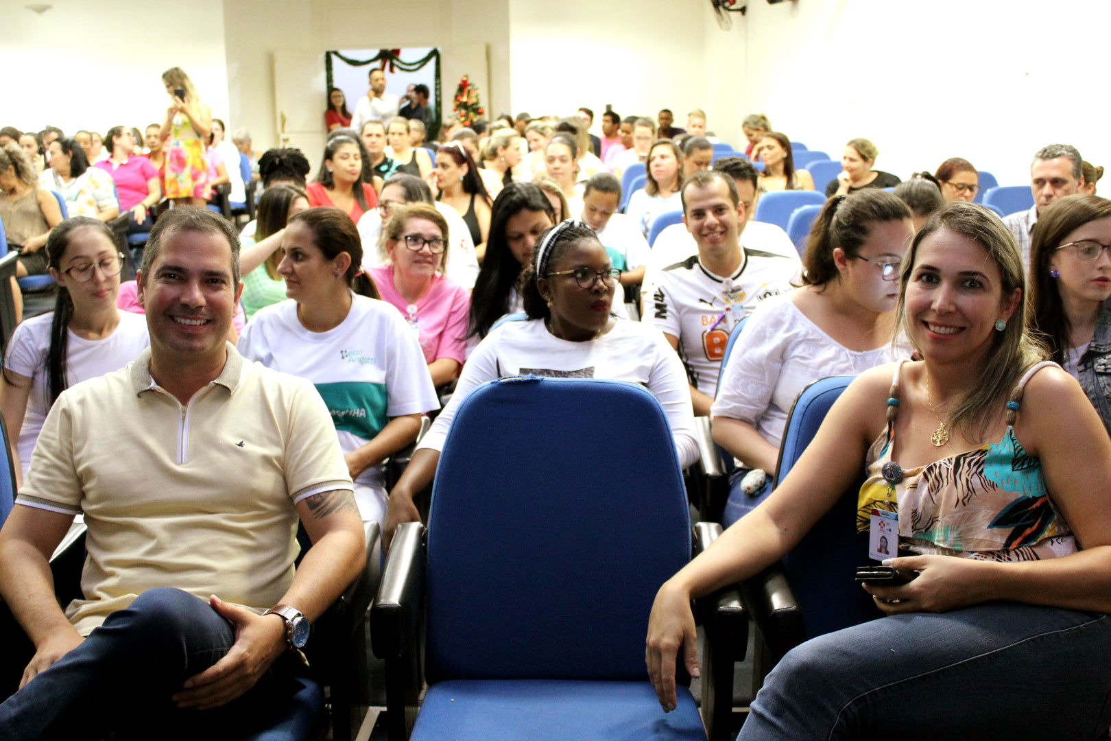 O clima natalino invadiu o Hospital Hélio Angotti, em Uberaba, na manhã desta segunda-feira (16). Foi o “EnCanto de Natal”, um momento emocionante que chamou a atenção de todos que estavam na instituição. A abertura foi com a apresentação de um coral natalino, formado por colaboradores e voluntários que cantaram a música “Um mundo bem…